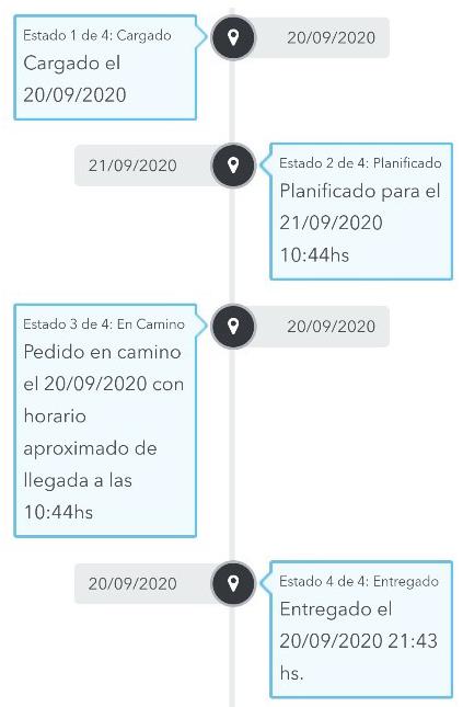 El tracking cuenta con distintos estados, según el estado del pedido.