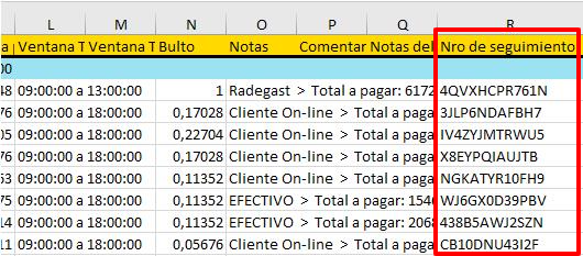 Al generar un nuevo camino, podremos hacer clic sobre Resumen de Ruta, y descargar el archivo Excel, donde veremos una nueva columna, Nro de Seguimiento, este código sirve para ingresarlo al buscador de Número de Seguimiento en la página de Tracking.