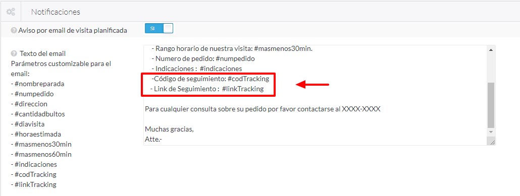 ¿Si deseo enviar las notificaciones a los clientes, que debo tener en cuenta para enviar el código de seguimiento y link de seguimiento?