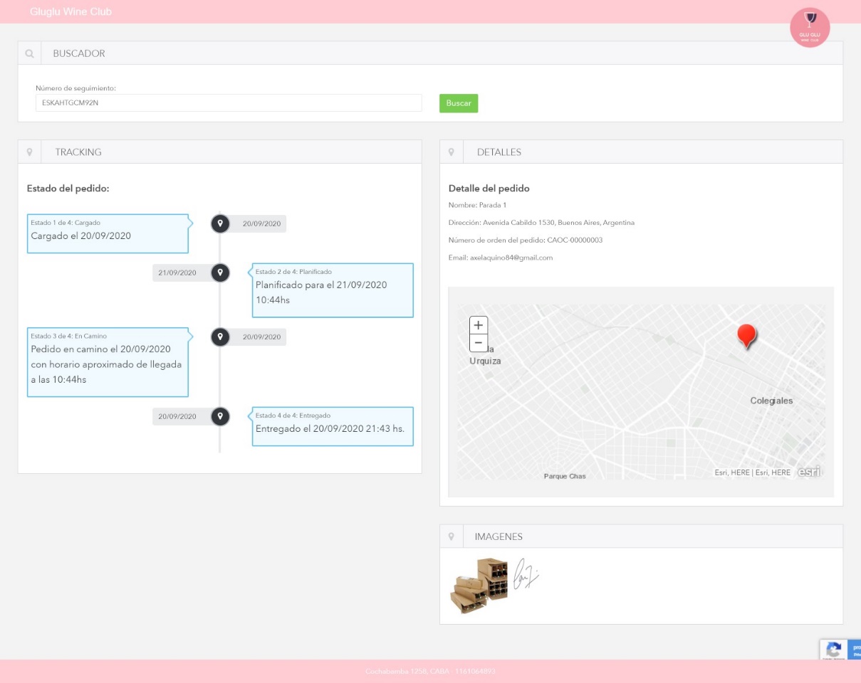 Captura de ejemplo de pagina de tracking