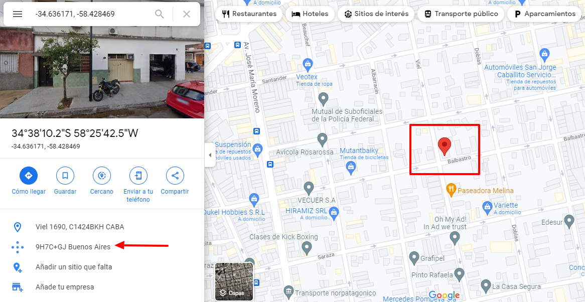 2. Haga click en la ubicación de la que necesite un 'código plus'.