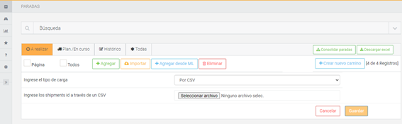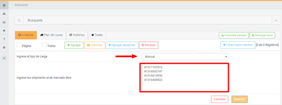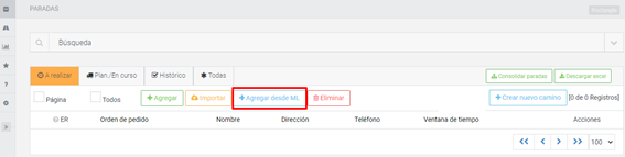 Tendremos dos formas de importar paradas desde Mercado Libre