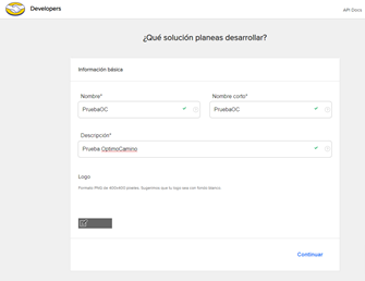 En la siguiente pantalla, en “Redirect url”, debemos colocar https://app.optimocamino.com