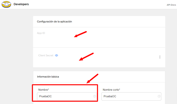 debemos copiar el App ID, el Client Secret y el Nombre de la Aplicación como se muestra en la siguiente imagen para