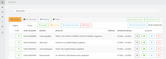 Como vemos en la siguiente imagen de la sección "Paradas", una vez cargados
