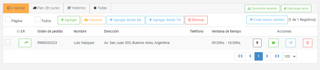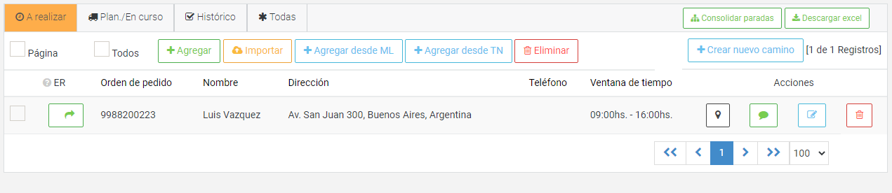 Esta funcionalidad nos va a permitir recibir en OptimoCamino las ventas de Tienda Nube. De esta manera podrán transformar sus ventas de Tienda Nube en paradas listas para crear una nueva ruta optimizada.