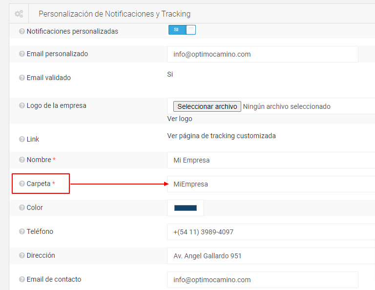 reemplazarse con el nombre de la carpeta. Y el valor del campo